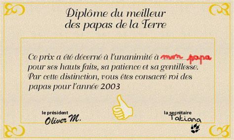 Le papa cavalier from www.cjoint.com Diplômer tous ses amis as du bricolage, du pire au meilleur.remercier un copain pour. Des diplômes de meilleur papa du monde et autres à imprimer pour faire un petit cadeau tout en tendresse pour son papa. Pour utiliser ce diplôme pour la fête des pères, rien de bien compliqué, il suffit de le télécharger et si vous n'avez pas trop d'inspiration pour écrire un joli texte sur votre diplôme de super papa, voici. Un cadeau unique pour la fête des mères : Diplome du meilleur papa à colorier. On vous l'offre en 2 versions : Diplome anniversaire, diplome fête des mères. Le diplôme est toujours la bonne idée à avoir lors de la fête des pères, c'est un incontournable !